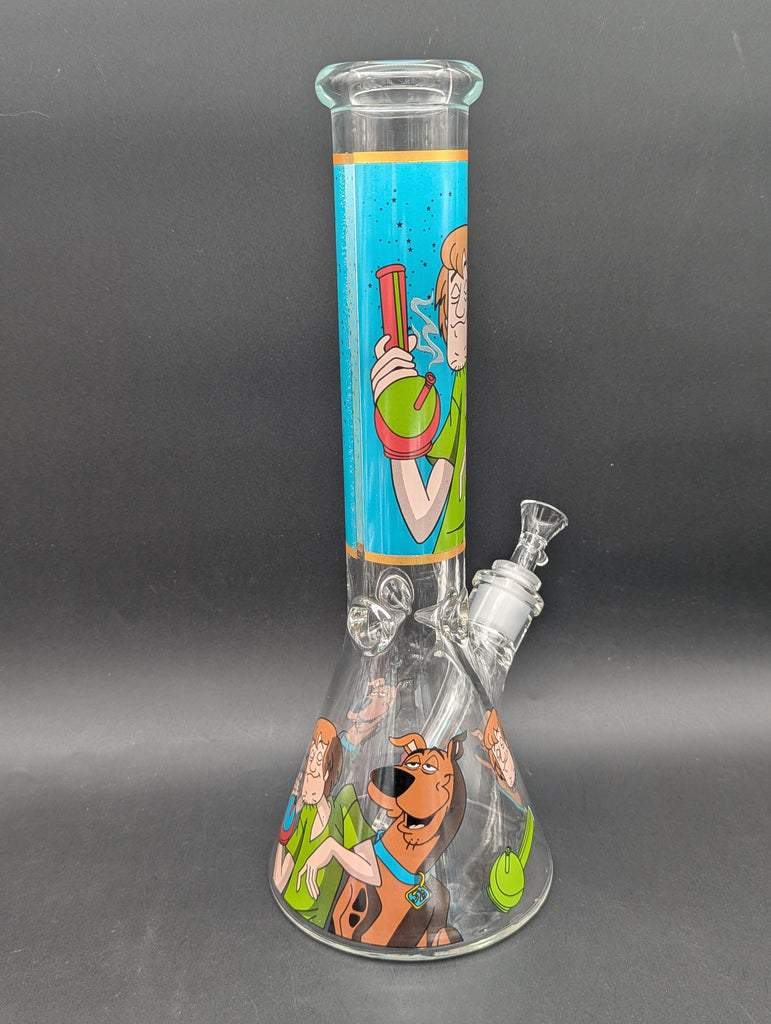 13.5" cartoonish drawing sticker decals on a 5mm thick clear beaker bong