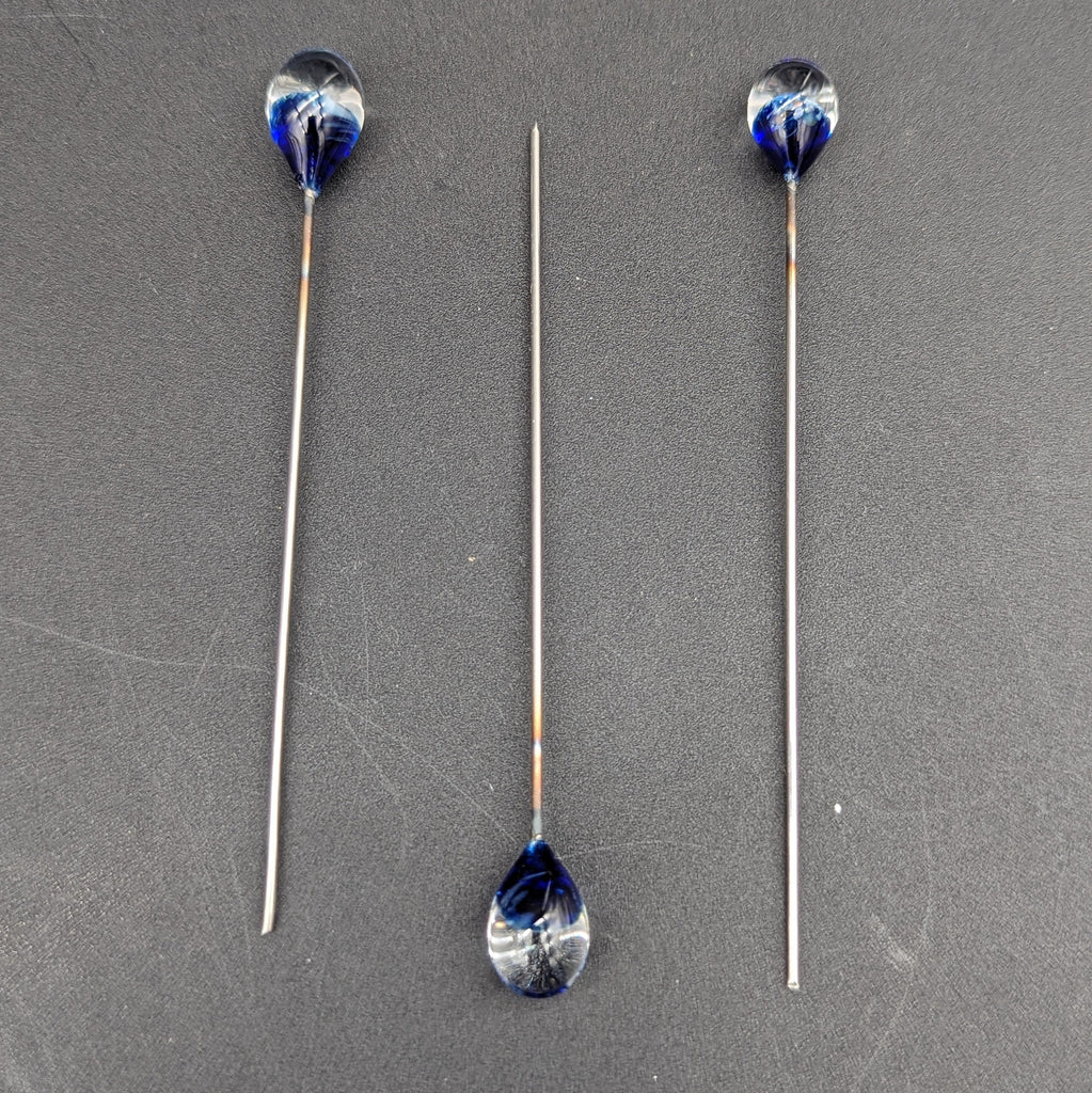 This metal stick poker is topped with a glass bauble that comes in varying colors and designs. Measuring 3.5 inches long, this hairpin poker is perfect for poking out bowls, dabbing, or unclogging straight pipes.