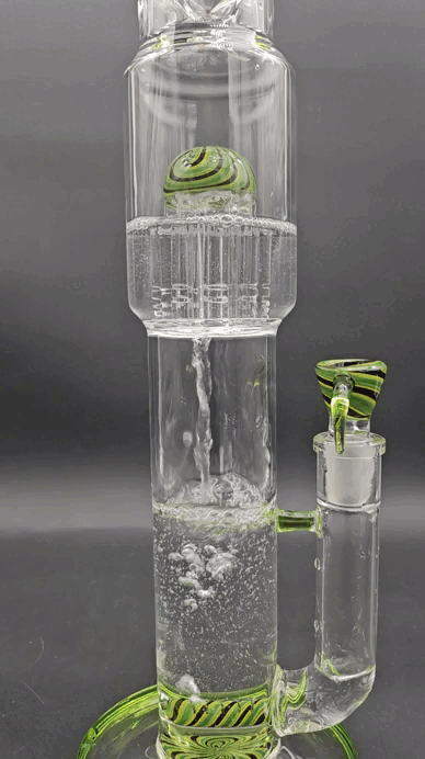 Midnight Glass tallest bong yet, this 18" Straight Tube Bong features 2 percs - a slitted inline and an 8 Arm Tree perc. These 2 percs provide optimal diffusion and a perfect smooth pull that will make all your hits feel like a breeze. Each bong has multiple worked or wig wag sections on the glass, including the percs, the tube base, and the bowl slide. There are also color matching accents on the base rim, mouth rim and joint connector. This bong is finished off with a smooth textured Midnight Glass Logo that will not wear or fade over time. All these matching accents and stylish percs create the perfect straight tube bong to add to your collection.