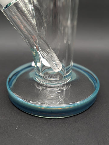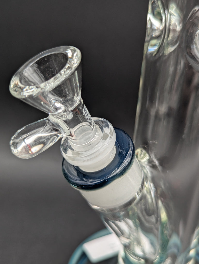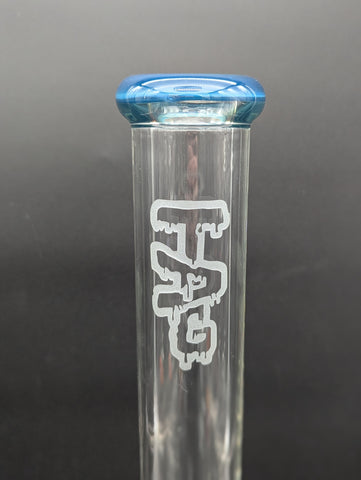 This 18" straight tube features blue slyme accents with a wavy sandblasted logo.