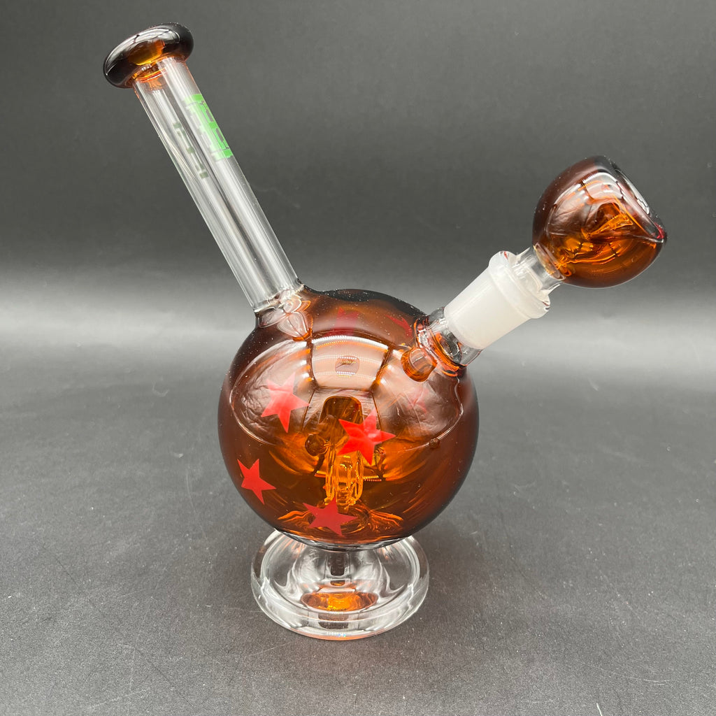 Unleash the power of the cosmos with our Wish Ball Bong. Immerse yourself in the magic of an amber-hued orb adorned with radiant red stars, capturing the essence of celestial energy. The stem diffuser percolator stacks bubbles to guarantee an otherworldly smoking experience, transforming every session into a mystical adventure.