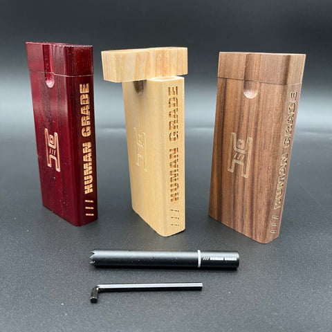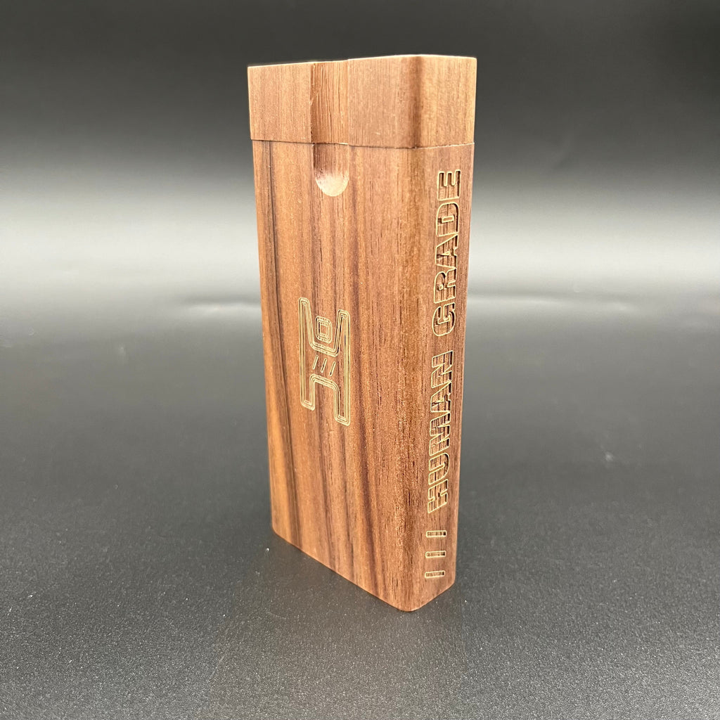 Introducing Human Grade wooden dugouts, crafted with both elegance and functionality in mind.  Our dugout features a cleverly integrated magnetic internal poker storage, keeping your poker discreetly concealed yet readily accessible.
