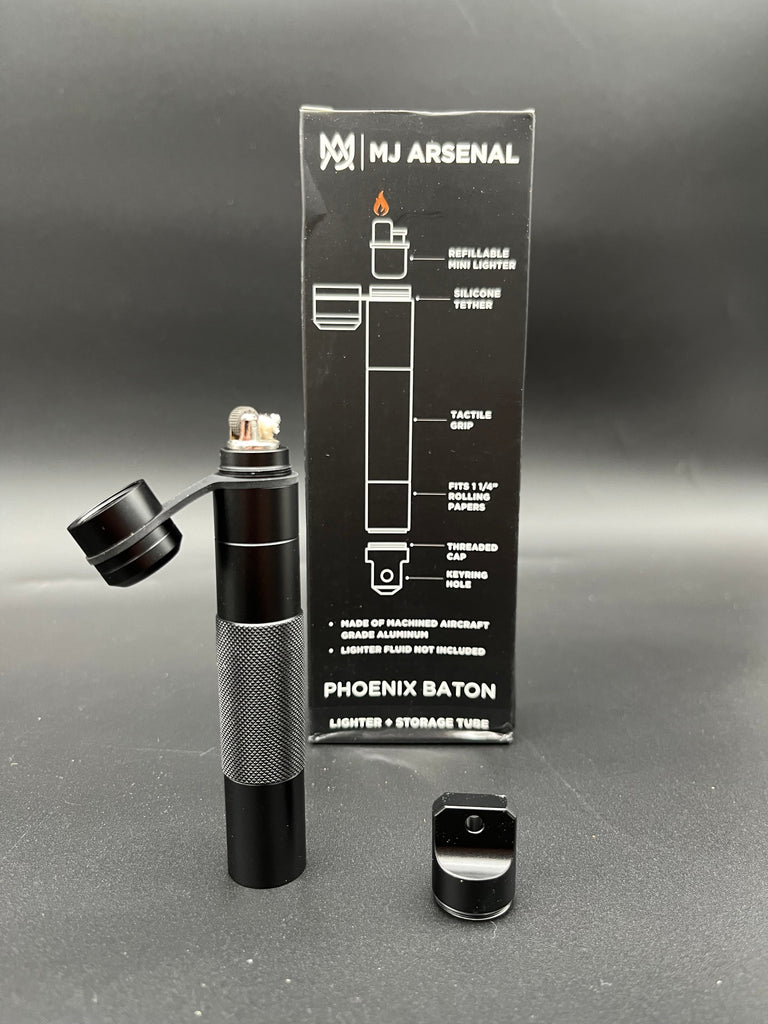 The Phoenix Baton by MJ Arsenal combines secure doob tube storage for your joints/rolled products with the ultimate convenience: a lighter. This all-in-one solution ensures you’re always prepared, no matter where your adventures take you.