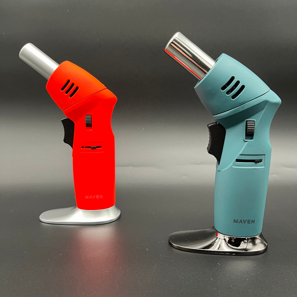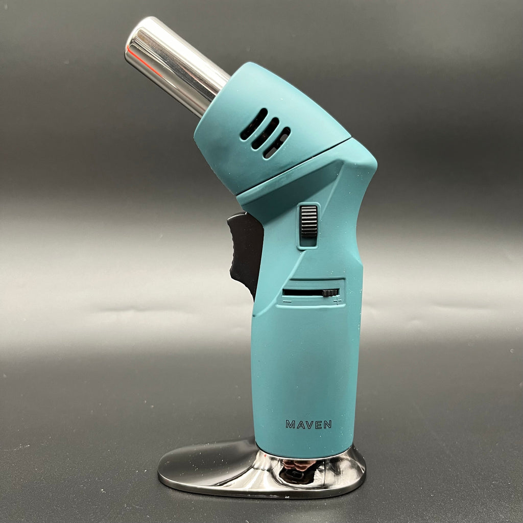 The Maven Model T is a refillable torch lighter with a unique adjustable angle design, sleek form, remarkable quality and a powerful jet flame.
