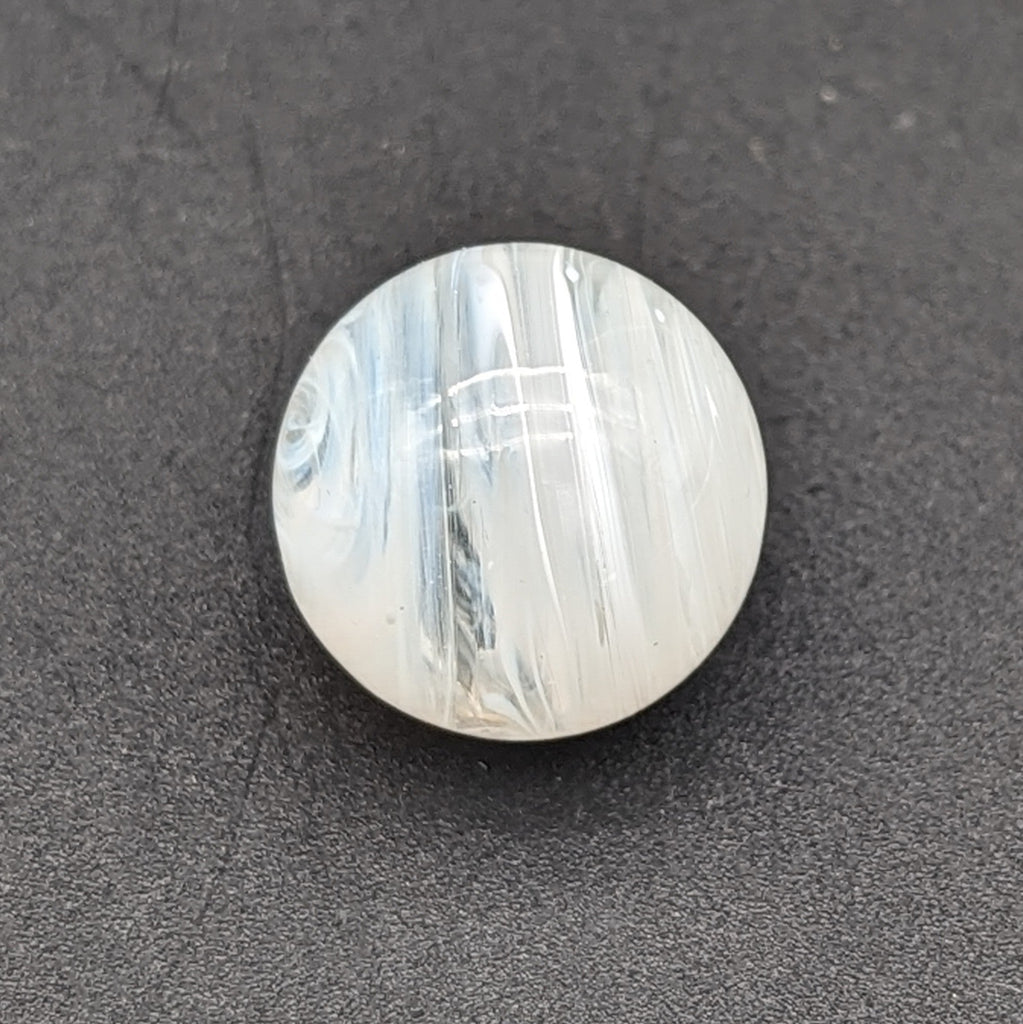 This marble has aswirl of white and clear colors. This is a 22mm OD marble which fits on top of most every terp slurper.