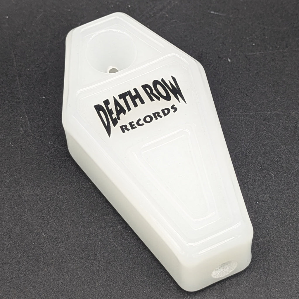 Conjure up the spirits of smokers passed with the Death Row Records Coffin Glass Hand Pipe! This spooky pipe is crafted in the shape of a classic coffin with a Death Row Records logo on top. Measures 3.25 inches (8.3cm) long