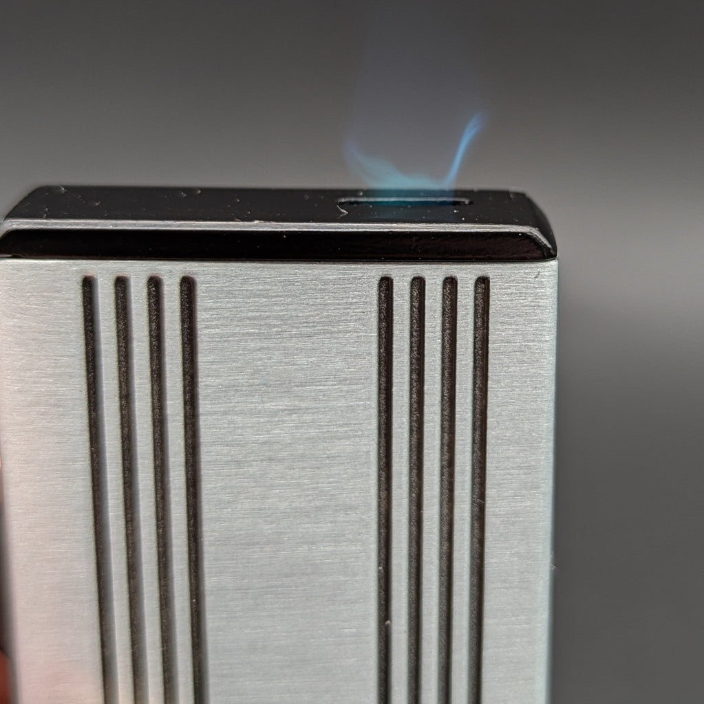 The Vector Defiance delivers a unique flat “pyramid” jet flame in a compact, modern body. To ignite it, simply slide down the side notch and the wind-resistant torch fires up instantly—wide, even, and perfect for cigars, bowls, or outdoor use. The slim rectangular design fits easily in your pocket, and a built-in cigar punch adds extra convenience without extra gear.