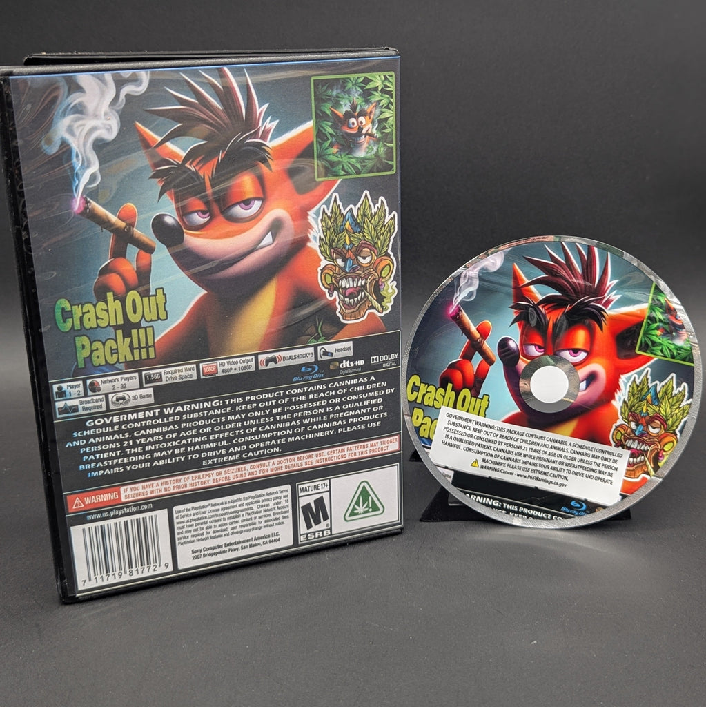 This novelty storage set includes a full-size DVD case paired with a circular, disc-shaped mylar bag designed to fit perfectly inside. The artwork mimics classic fighting-game themes, making it a fun and discreet way to store 3.5g of flower. This is sold as a set, including 1 plastic DVD case and 1 Mylar Bag.