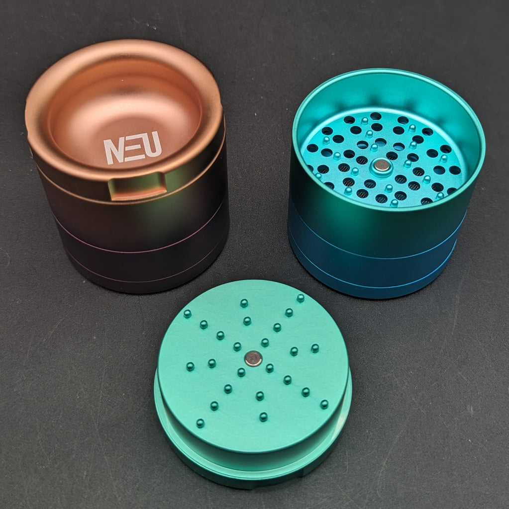 Introducing the NEU Grinder — where precision meets utility in the world of herb grinding. Designed for the discerning enthusiast, the NEU Grinder is crafted from high-quality anodized aluminum, ensuring durability and a sleek, modern aesthetic. This four-piece grinder features innovative micro-rounded teeth, engineered to gently yet effectively grind herbs while preserving their integrity and potency. This unique grinding mechanism guarantees perfect consistency every time, enhancing your experience without compromising the herb’s natural qualities.
