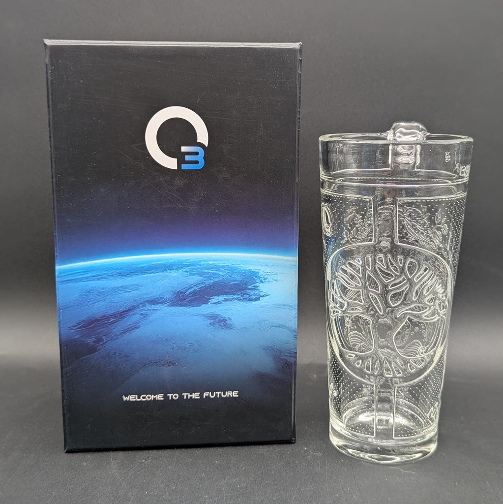 Standing at 7.5 inches tall and crafted from premium borosilicate glass, the Gaia tumbler by O₃ is a tribute to Mother Earth, symbolizing harmony, growth, and a return to nature. A heavenly depiction of Gaia adorns the back of the cup, embodying the nurturing and grounding spirit of the planet.