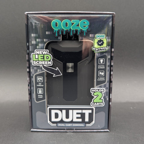 The Ooze Duet is a unique 510 thread battery that features double 510 threads, so 2 cartridges can be used at once. The IntelliSwitch controls if the left thread, right thread, or both threads are activated. The Duet features a digital screen with a battery indicator and voltage level, and completely conceals the cartridges inside. It is compatible with 0.5g and most 1g cartridges. It does NOT include a charger.