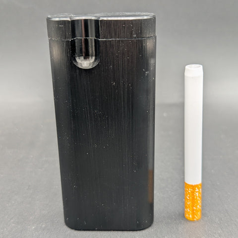 Stay discreet and prepared with this 4-inch Pulsar aluminum dugout, a compact and reliable all-in-one system for portable smoking. The twist-to-open lid reveals a hidden stash chamber and a spring-loaded aluminum one-hitter that pops up for quick access. Built from durable anodized aluminum, it resists dents and keeps your herb fresh no matter where the day takes you.