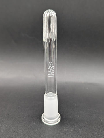 Thick Ass Glass 18/14mm Super Slit Showerhead Downstem is built for enhanced diffusion and smoother sessions. Featuring a showerhead design with finely cut super slits, it breaks smoke into multiple bubbles for maximum cooling and filtration. Compatible with 18mm to 14mm joint setups, this downstem is a durable and functional upgrade for a variety of glass pieces.