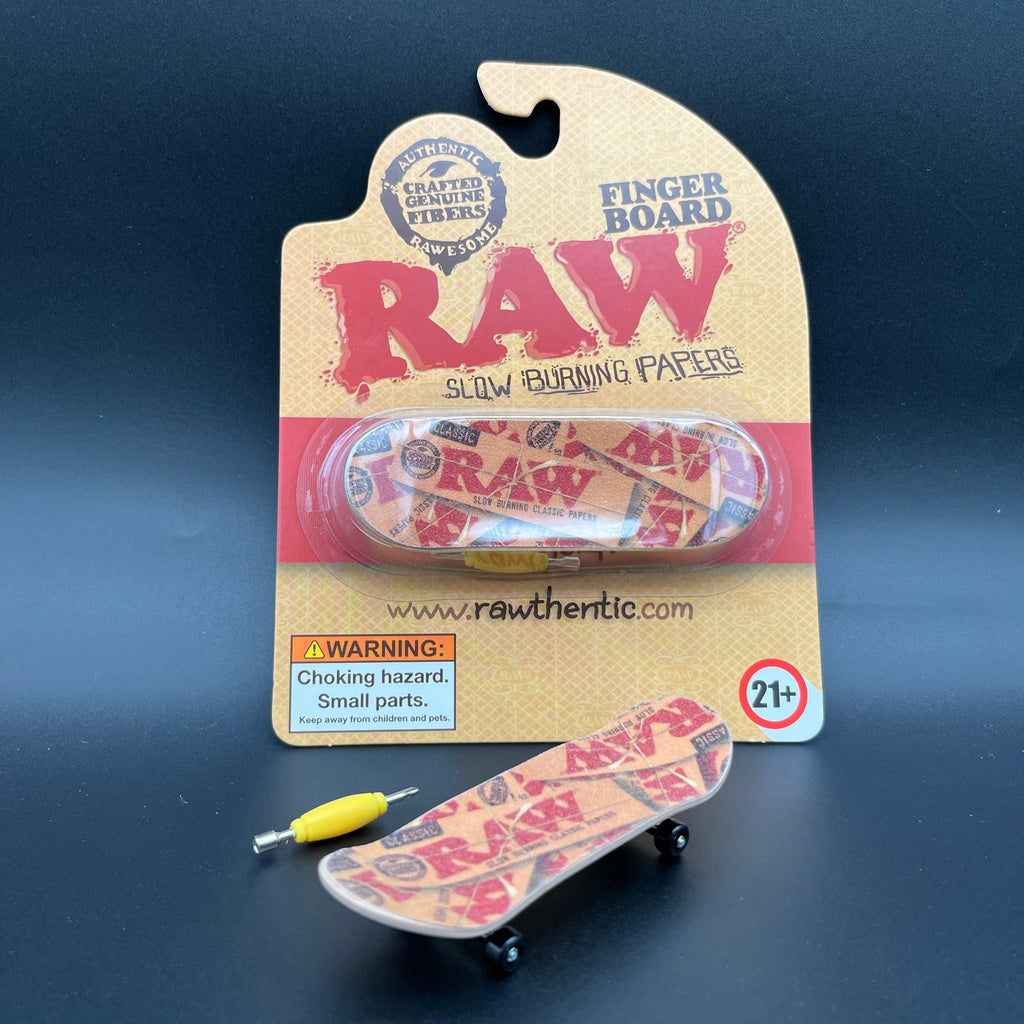 Kickflip into your sesh with the RAW Finger Board, the pocket sized deck packed with full sized RAW energy. Built for skaters, rollers, and restless hands, this mini board brings skate park spirit straight to your fingertips. Nail tricks between sessions, cruise your desk in style, or keep your flow going while you roll one up.