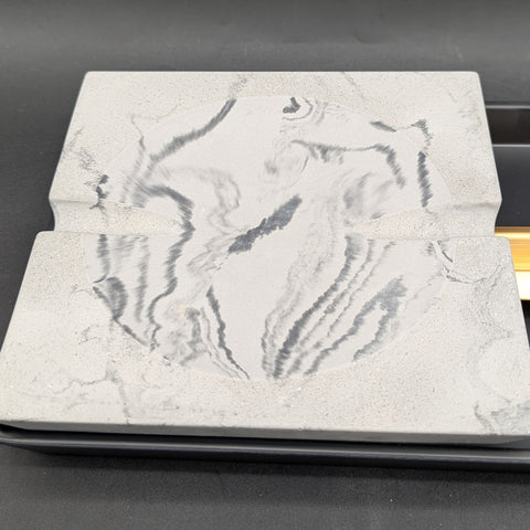 - Hand-poured concrete ashtray with a marbled design adds a refined aesthetic.