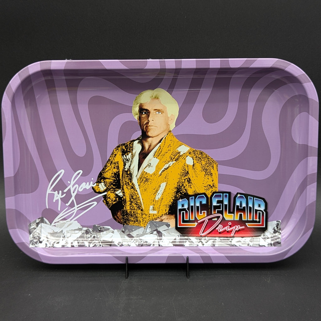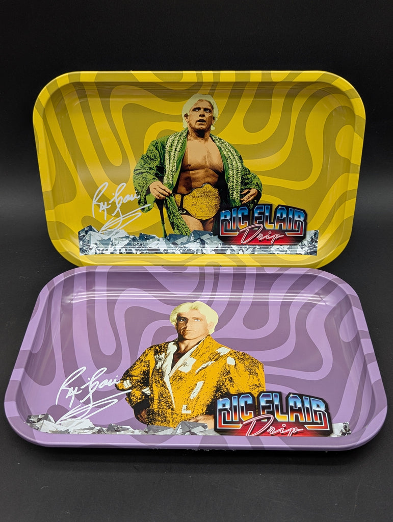 "Catch your groove with the Ric Flair Drip Rolling Trays - the perfect accessory to elevate your rolling game. Roll up in style with these trays that provide a smooth surface for your herbs and spices, making it easy to roll up your best creations. Plus, with a flashy design inspired by the legendary Ric Flair himself, these trays are sure to make a statement. Whether you're chilling at home or hitting the streets, these trays have got you covered (in style, of course!). So get ready to drop some flair in every roll!"