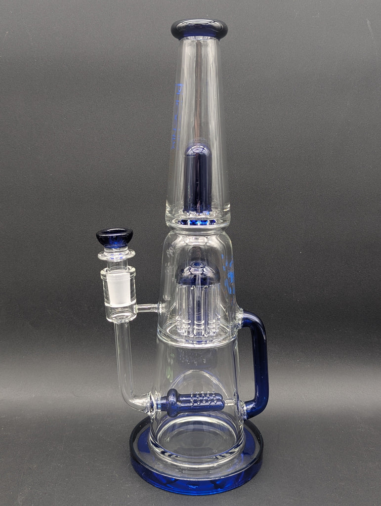 Phoenix glass dual perc bong with a double inline perc to 12 arm tree and recycler drain